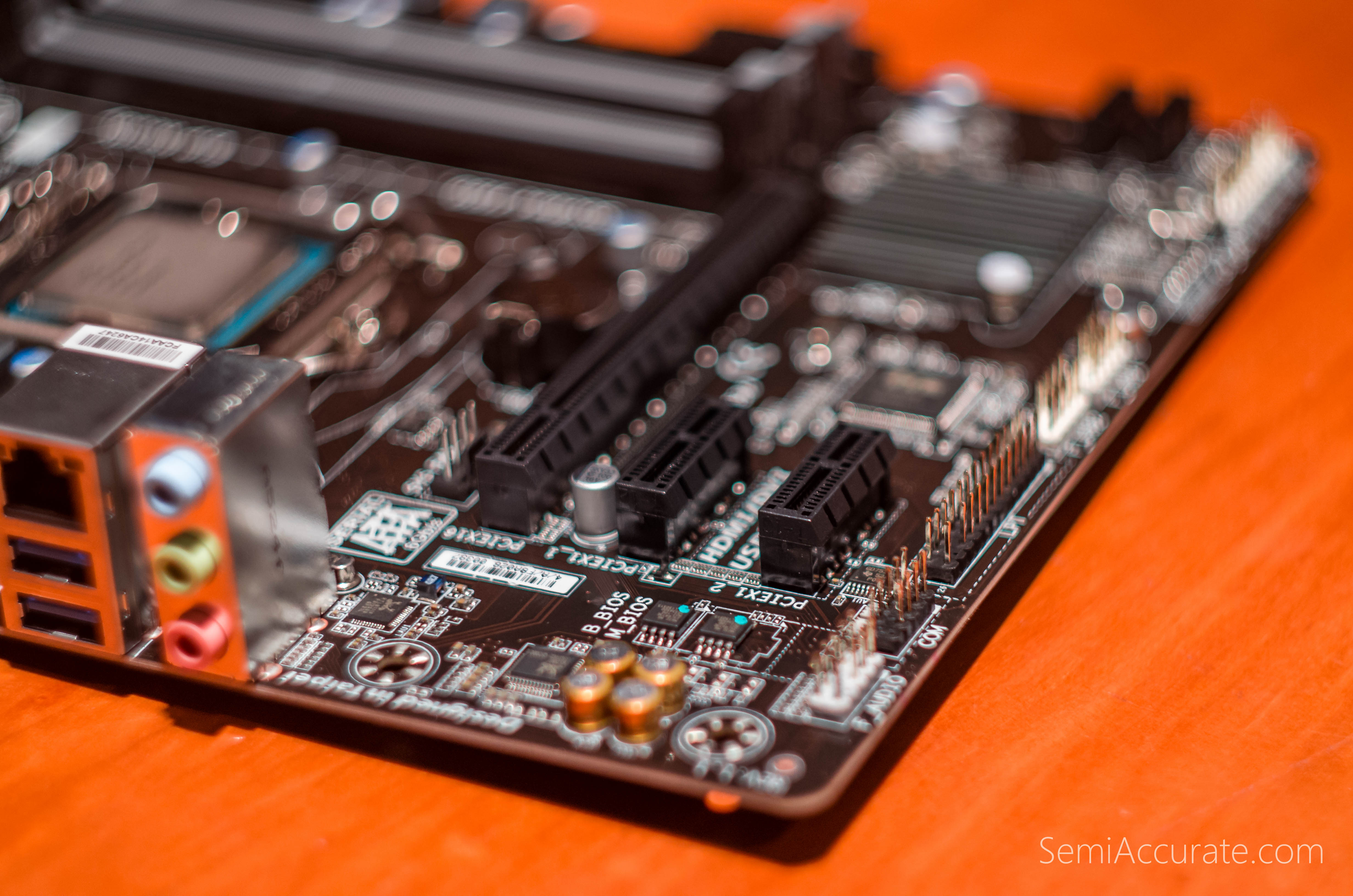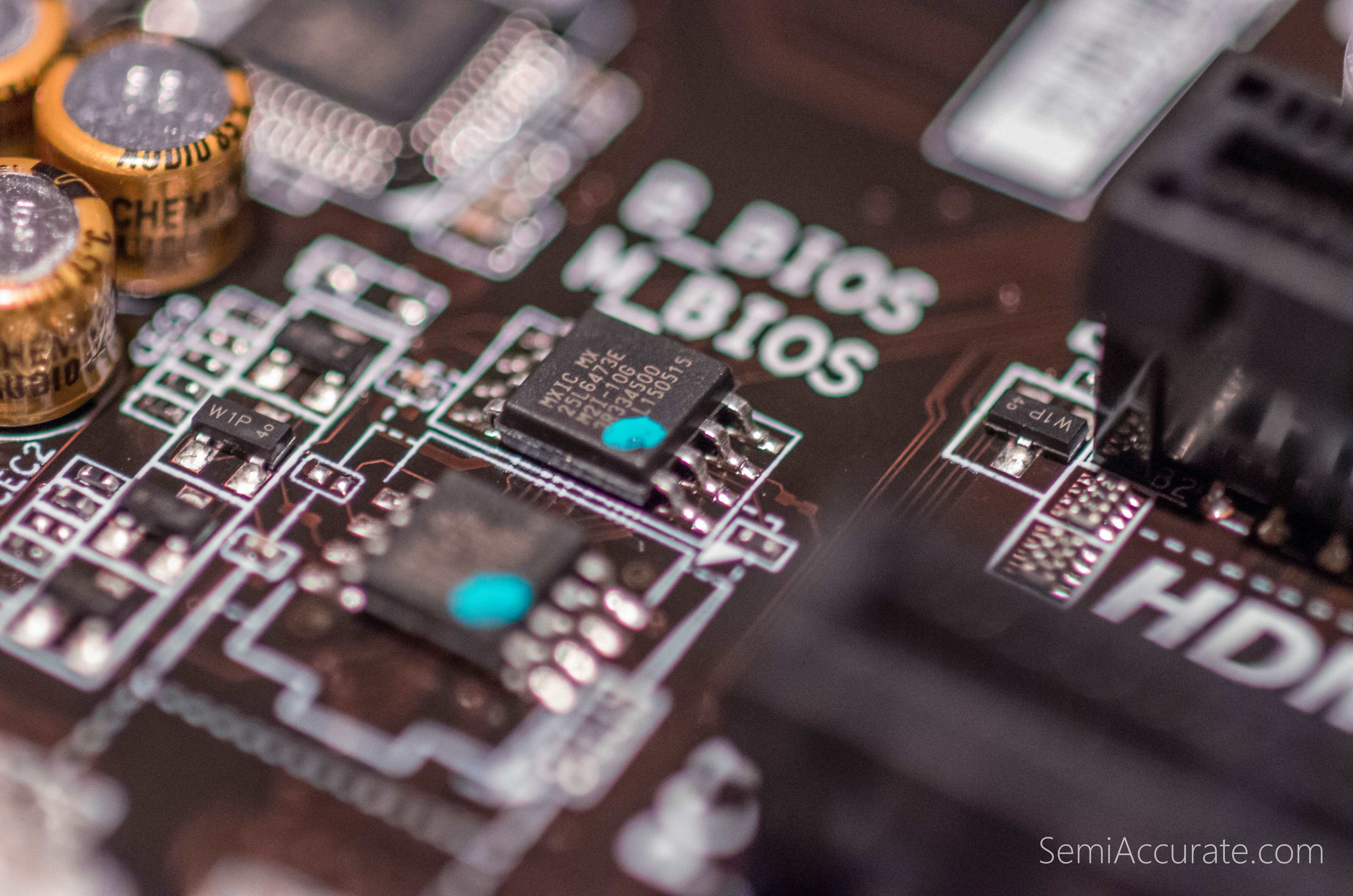 Here we find both BIOS chips of Gigabyte’s signature dual BIOS feature. While this kind of a configuration makes sense on this motherboard. It would be nice if there was more physical space between the BIOS chips. You know, if I accidentally drop a rock on that spot, it would be a real shame to lose both chips in one shot.