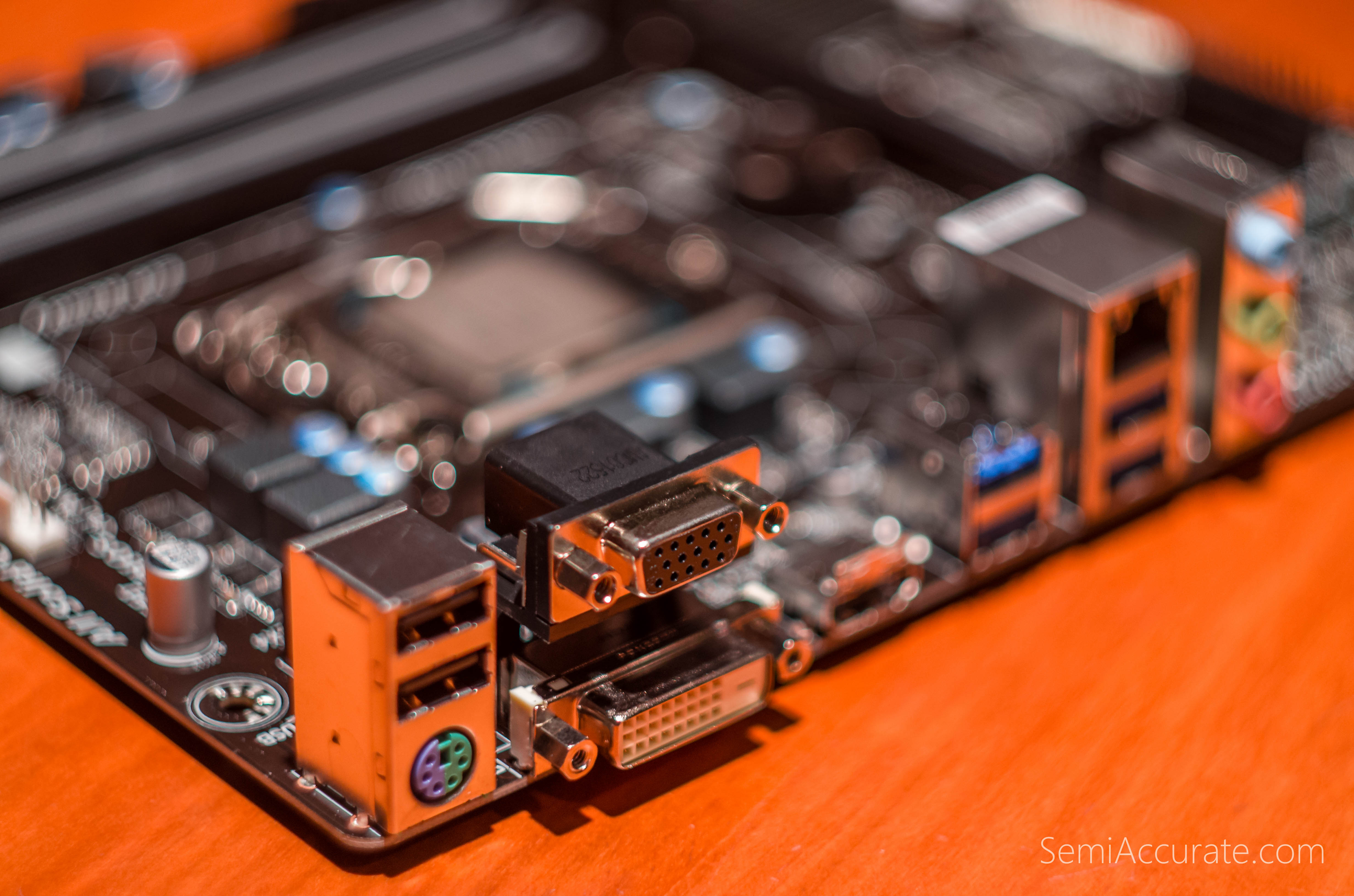 Two USB 2.0 connectors. One PS/2 port for those that still haven’t converted to USB-based peripherals. One VGA port with a single-link DVI port to support it and an HDMI out to top the whole thing off.