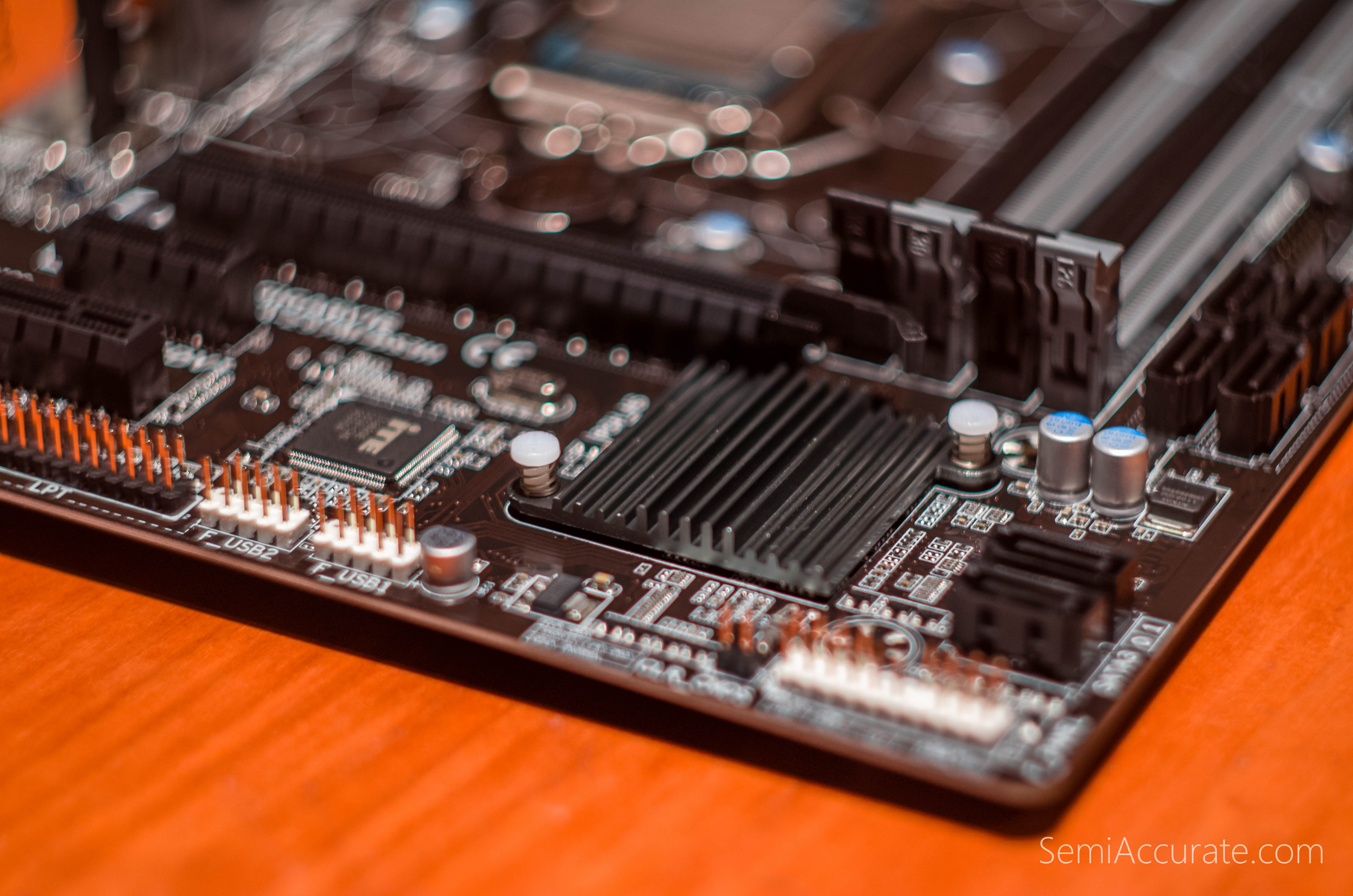One item worth applauding on the GA-Z97M-DS3H is its classy yet low profile South Bridge heatsink. Unobtrusive in almost every way this heatsink is great at doing what South Bridge heatsink should do best: disappear under a giant graphics card.