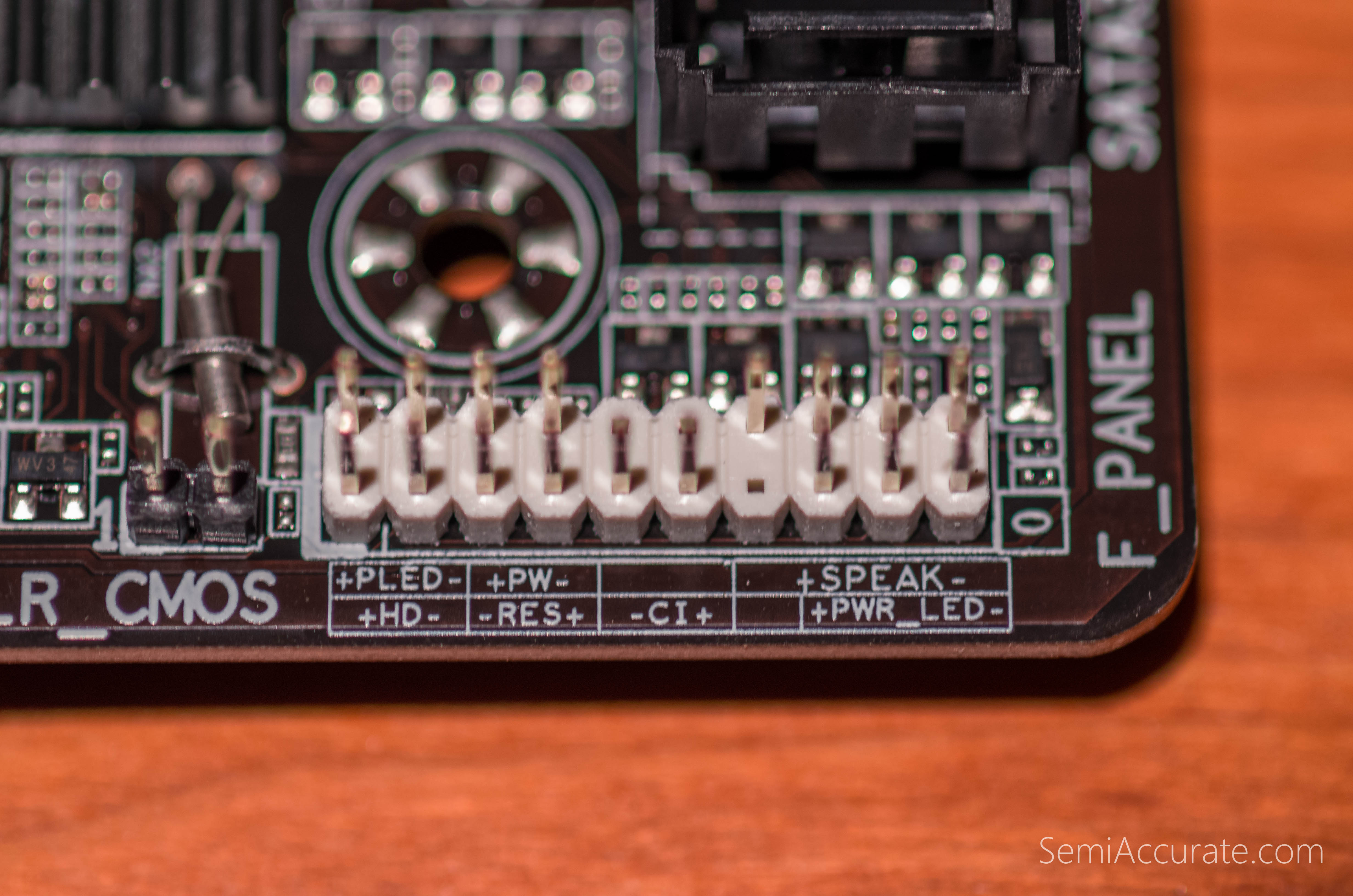 In a rather curious move Gigabyte has endowed the GA-Z97M-DS3H with English like technical markings that describe the purpose of the front panel header pins on the motherboard’s bottom right corner.